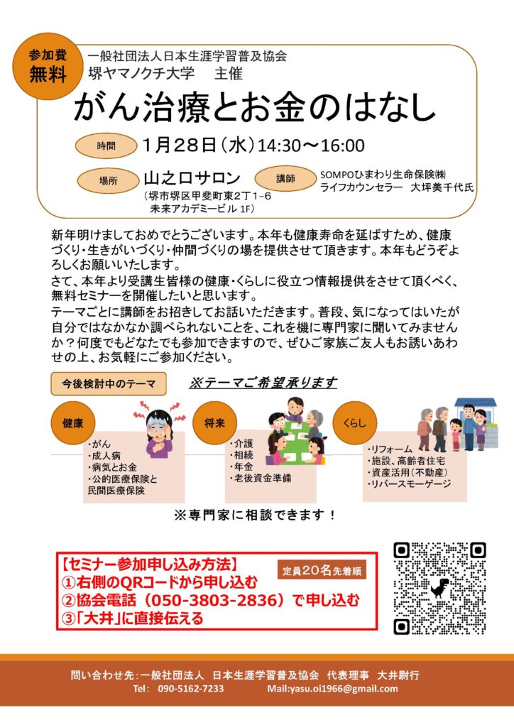 本年より皆様の健康・くらしに役立つ情報提供させて頂く勉強会を開催します。奮ってご参加ください。